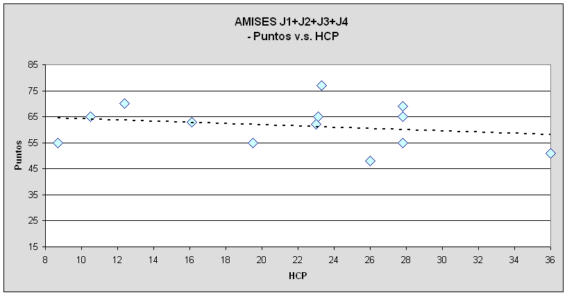 (Stableford) y handicaps obtenidos como suma de las J1, J2 ,