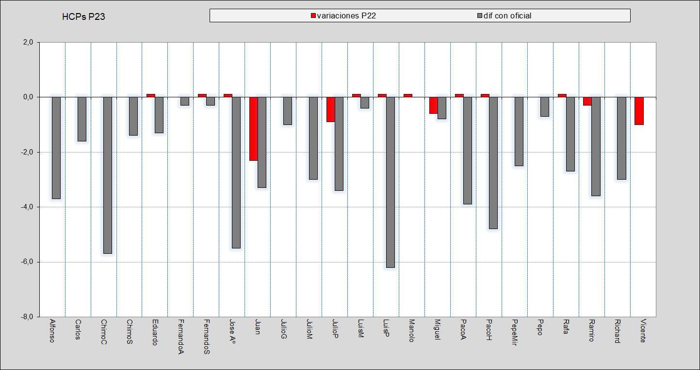 Resultados P22 (inicial, final), oficial y adoptado P23: